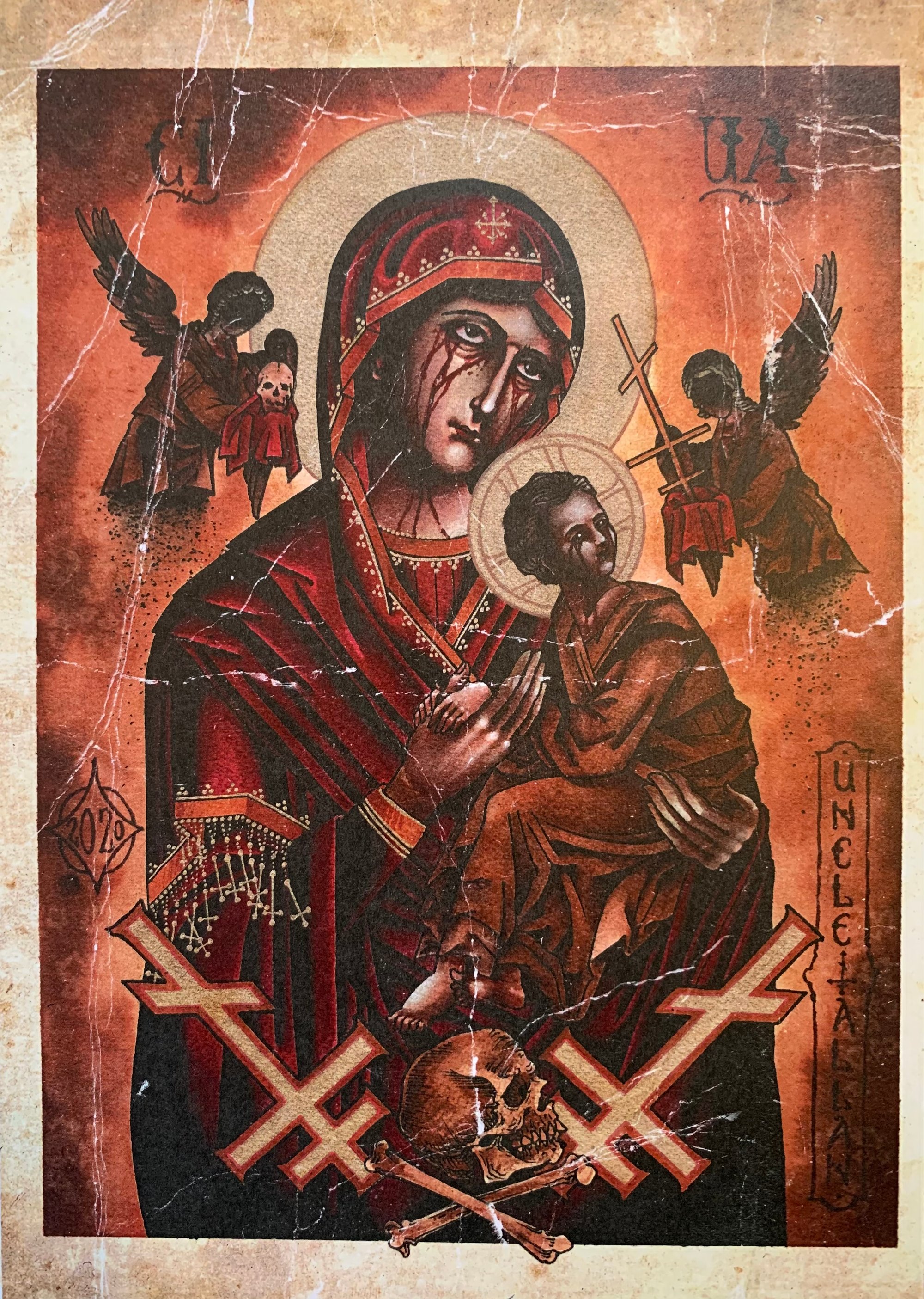 Another treasure discovered in an ancient satanic coven hidden in the catacombs under a very old Russian Orthodox Church. After have been hidden away for centuries it is finally available to you to add to your own personal satanic shrine. Also goes well in studies and living rooms.